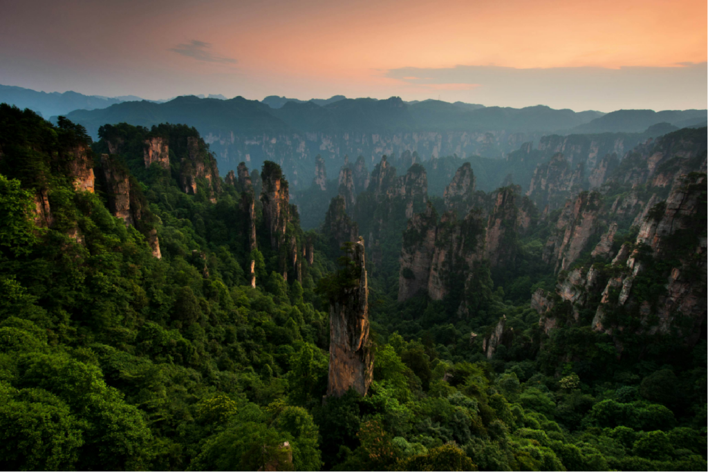Spectacular sandstone pillars and lush forests inspired Avatar’s landscapes, Wulingyuan surrounded by a sea of clouds is like a fairyland falling into the mortal world.